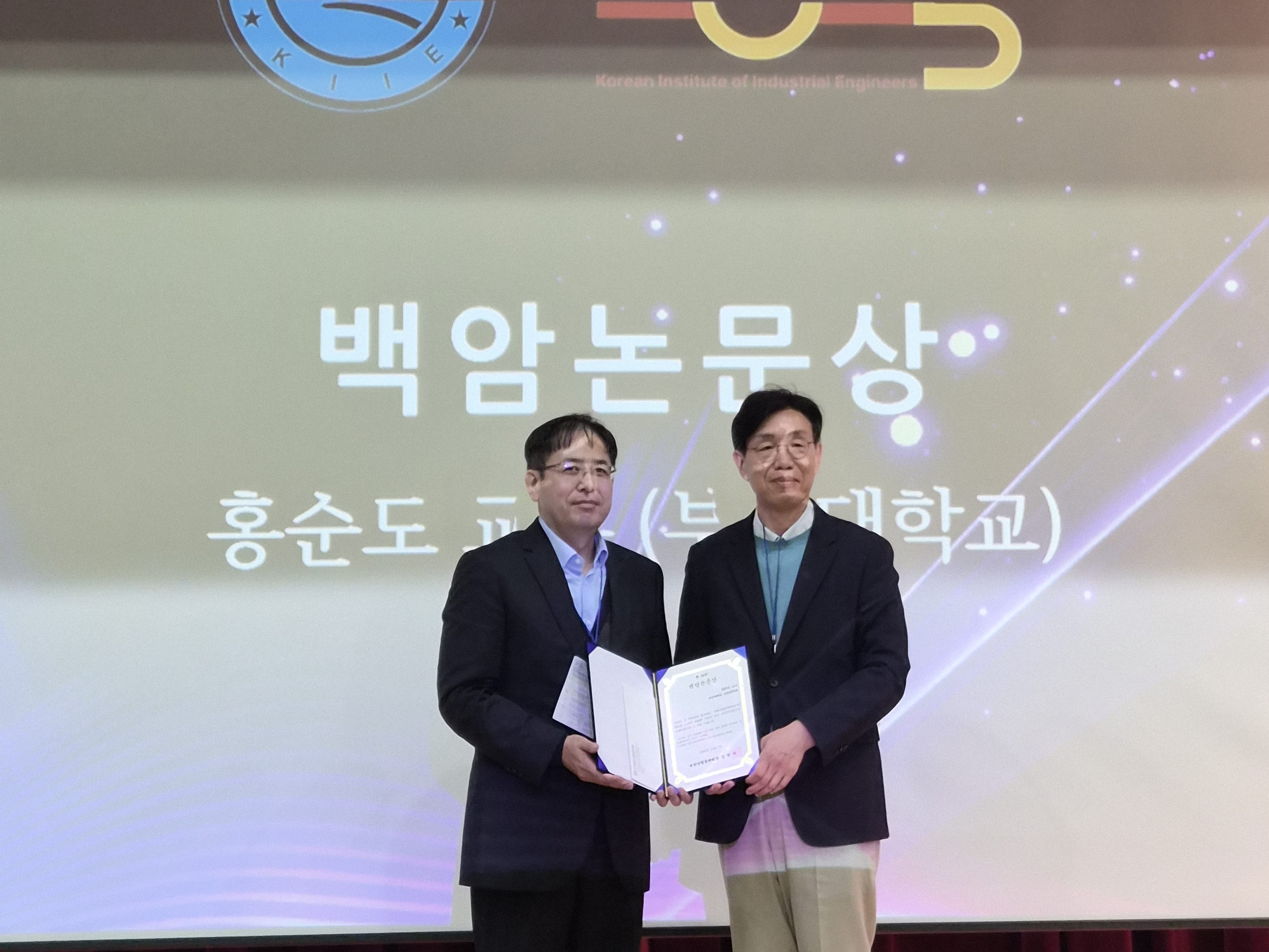 Professor Soondo Hong received the Baekam Academic Award at the 2025 Fall Conference of the Korean Institute of Industrial Engineers (KIIE), held at KAIST on Friday, November 7, 2025. The Baekam Academic Award is a prestigious honor presented by KIIE to recognize the most academically and industrially impactful research among outstanding papers published in the Journal of the Korean Institute of Industrial Engineers within the past three years. The award is given to one individual among the corresponding author or up to two co-authors of the selected paper and was established to promote academic advancement and active research in the field of industrial engineering. As the representative awardee, Professor Hong was honored for his research contributions. The Simulation & Production Logistics Laboratory continues to make significant contributions to the development of industrial engineering in Korea through active research in manufacturing logistics and simulation.